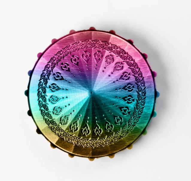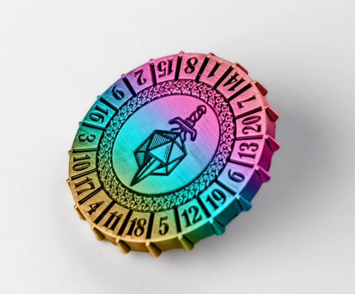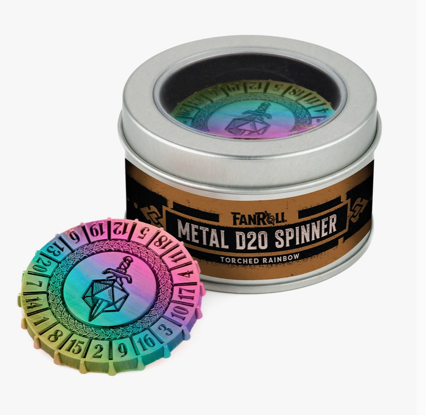 Add some excitement to your tabletop games with our Metal D20 Spinner! This premium metal top features 20 numbered sides that replace your standard 20 sided dice, providing a unique and fun way to decide your next move. Made from high-quality metal in the Torched Rainbow variant.