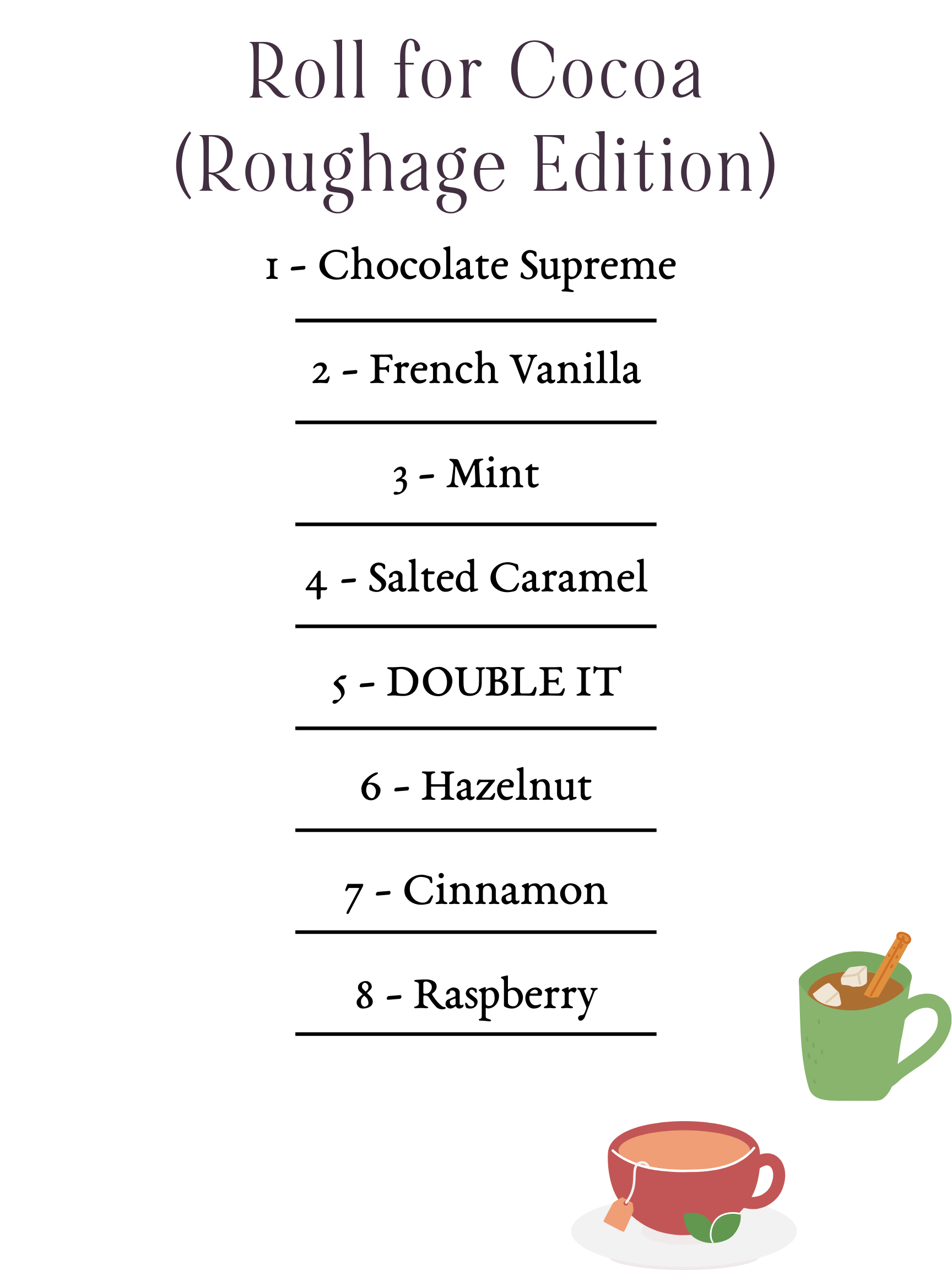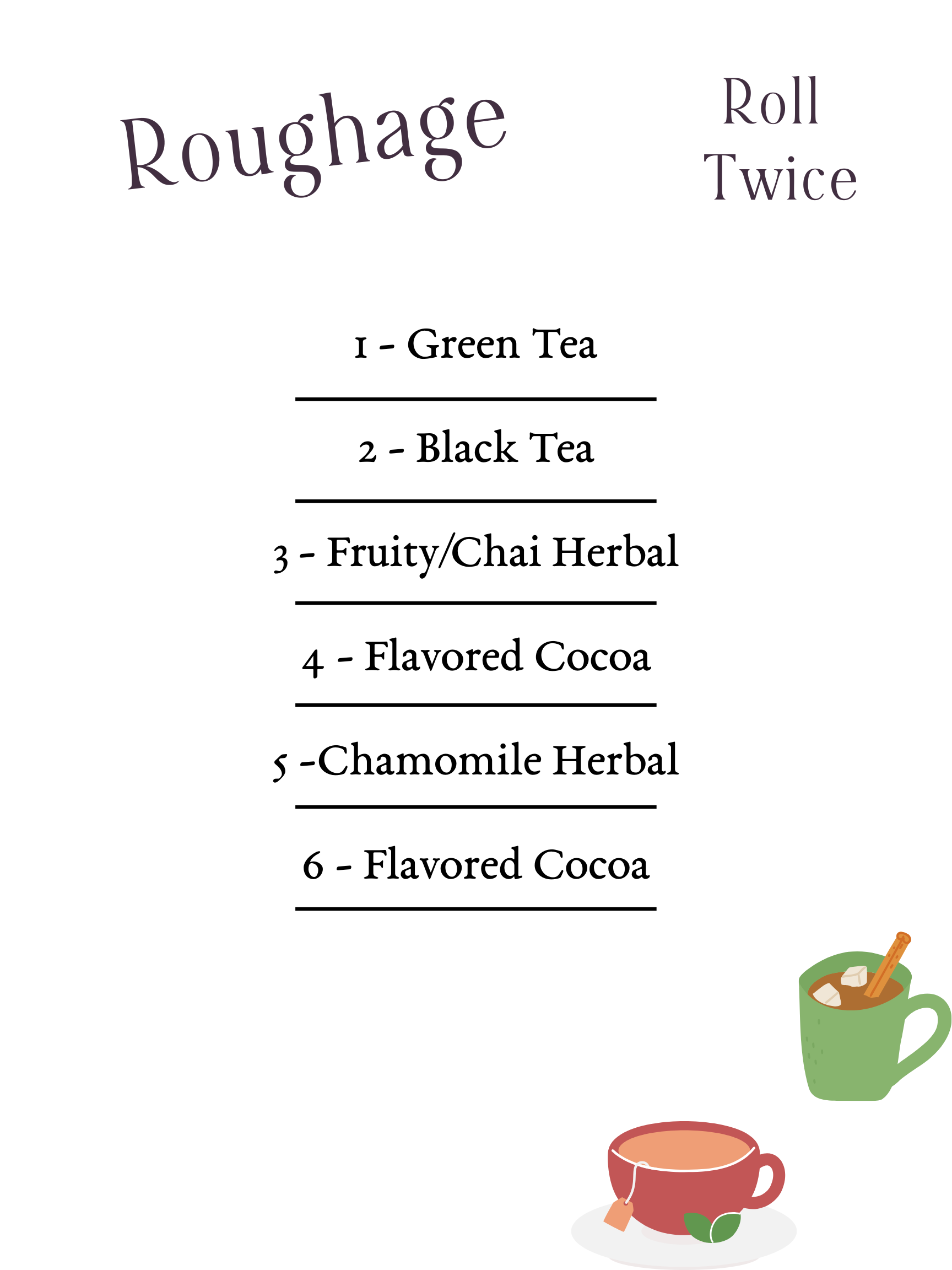 Roughage - two drink packets, either tea or cocoa