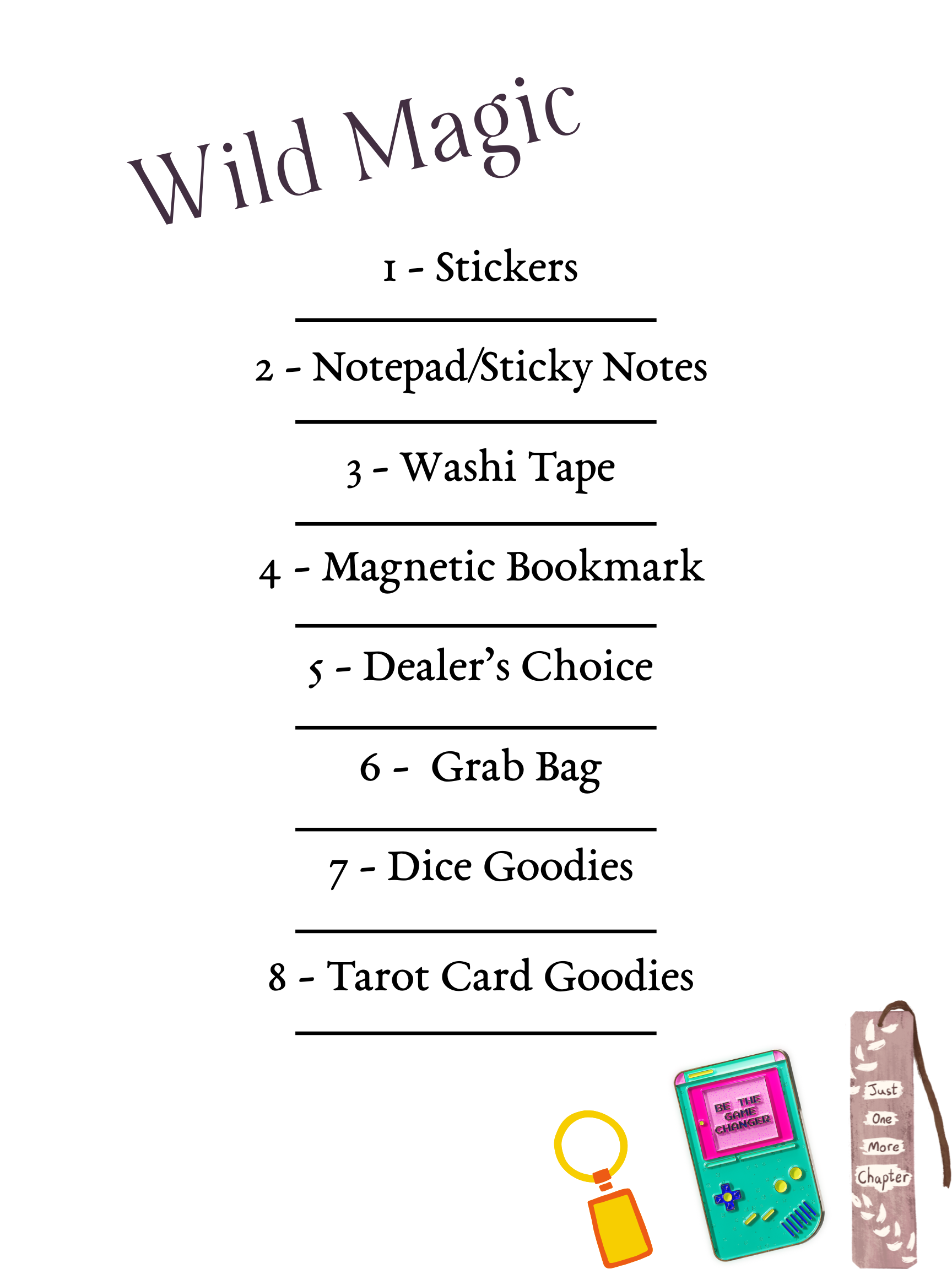 The only item not requestable is the Misfit Dice for the Wild Magic -due to limited quantities, these are exclusively available either in the Roll for Reading boxes or may be purchased by themselves.